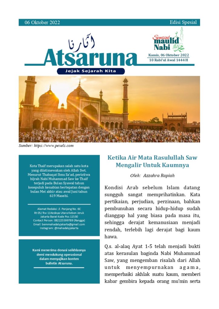Buletin ATSARUNA EDISI SPESIAL MAULID VIII October 6, 2022 Ma'had Aly Jakarta بِسْــــــــــــــــــمِ اللهِ الرَّحْمَنِ الرَّحِيْمِ BULETIN FORMAT PDF Post Views: 791