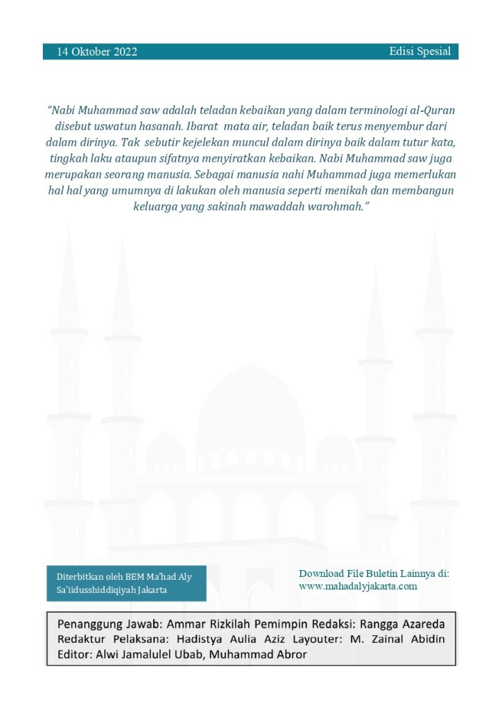 Buletin ATSARUNA EDISI SPESIAL MAULID XVI October 14, 2022 Ma'had Aly Jakarta بِسْــــــــــــــــــمِ اللهِ الرَّحْمَنِ الرَّحِيْمِ BULETIN FORMAT PDF Post Views: 1,006