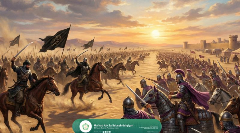 MAHADALYJAKARTA.COM—Tahun 634 Masehi menjadi saksi dari salah satu pertempuran paling menentukan dalam sejarah awal Islam. Di sebuah hamparan padang pasir di Syam, dua kekuatan besar bertemu. Pertempuran itu adalah Perang Ajnadayn perang besar pertama antara kaum Muslimin dan Romawi yang membuka pintu menuju penaklukan Syam. Perang ini bukan hanya soal keunggulan senjata, tetapi soal visi, keberanian, dan keyakinan.